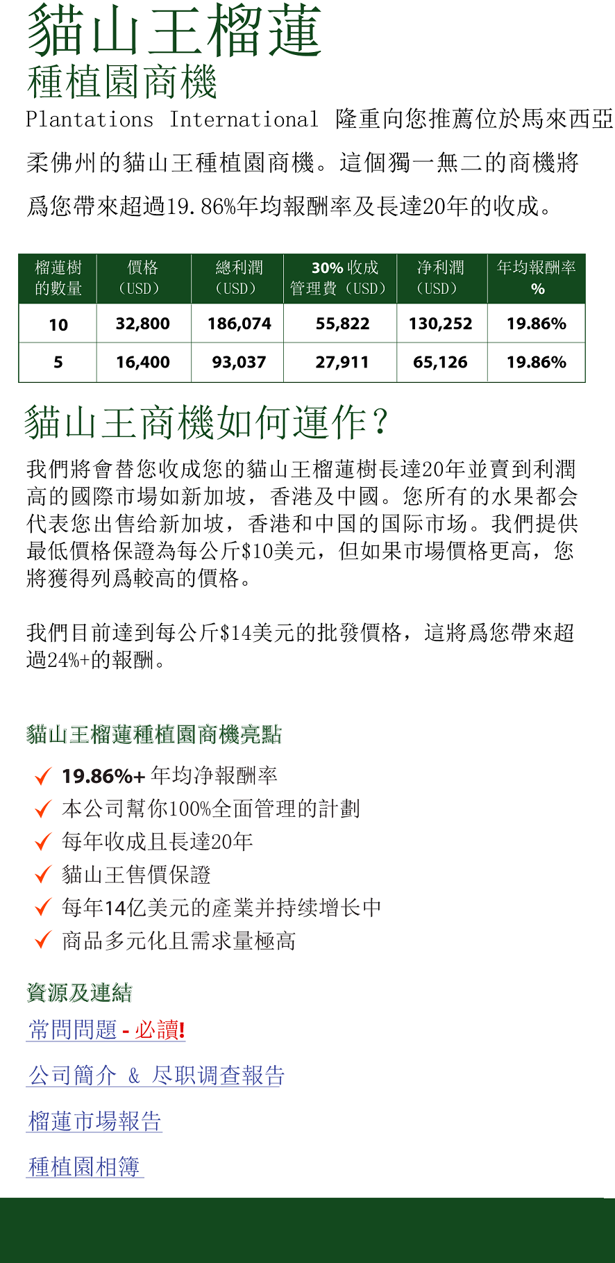 MUSANG KING DURIAN INVESTMENT |